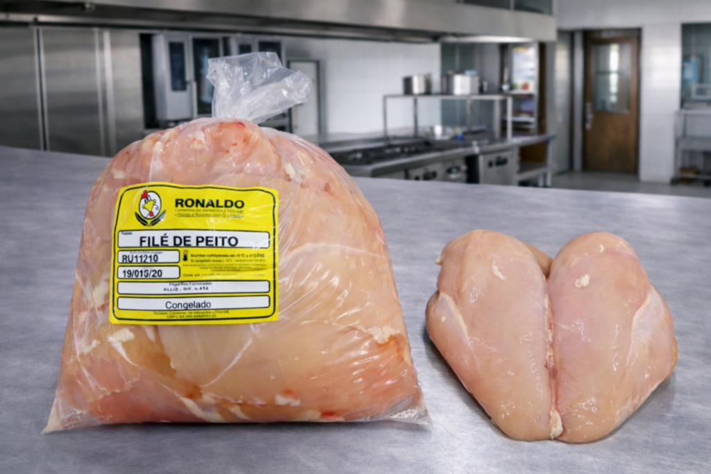 Filé de peito de frango selecionado, opção prática e versátil, com excelente rendimento. Indicado para diversos tipos de preparo em cozinhas profissionais.